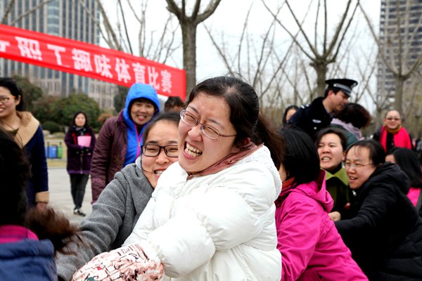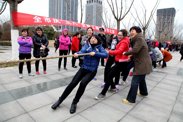 此次趣味比赛共设拔河,30米托球跑,跳绳,闭眼单足立四个项目。 来自枣庄全市的42个代表队,700余名妇女同志参加了此次活动。赛场上,各队女职工情绪高亢、精神饱满。整场活动中,各个参赛队都表现出了良好的竞技状态和团结拼搏的精神。此次活动的成功举办,不仅调动了女职工们的积极性,促进了女性相互之间的沟通交流,培养了团队精神。同时,也进一步体现了枣庄市广大女职工积极向上的精神状态,也展示了女性坚强、勇敢一面,使女职工在欢乐的节日中受到教育,得到提高,在紧张的工作之余,享受到了一份轻松与快乐。
