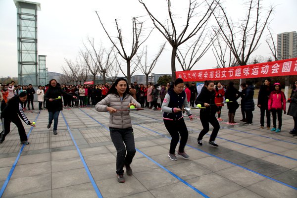 本站讯为庆祝“三八”国际妇女节106周年,切实增强枣庄市妇女同志的健身意识,提高广大妇女同志的身体素质,引导市直机关女干部职工作用科学,文明,健康的方法健身,3月8日,上午,由枣庄市妇联,市体育局主办的庆“三八”女职工趣味比赛在凤鸣湖广场举行。