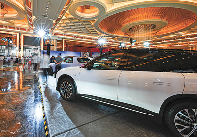 在海南国际会展中心,人们在新能源汽车下乡活动上参观。