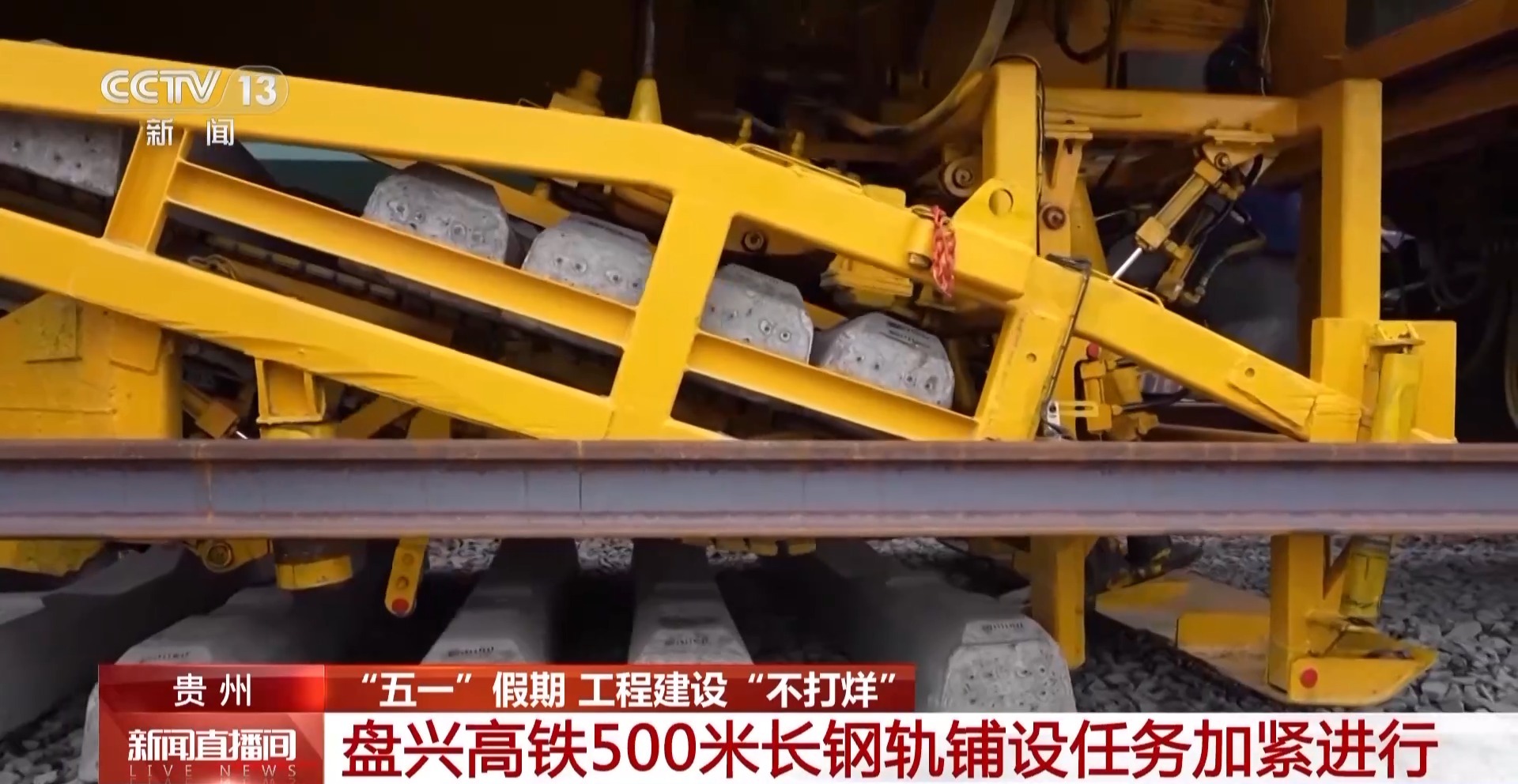 在贵州省盘州市境内的盘兴高铁建设工地上,机器轰鸣声阵阵,工人们正操作着我国自主研制的铺轨机,加紧进行500米长钢轨铺设任务。据了解,盘兴铁路建成后,贵阳至兴义2小时左右可达,彻底改变两地之间的交通格局。