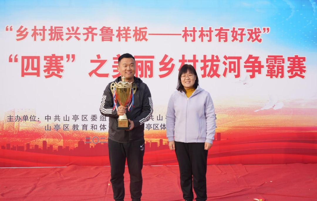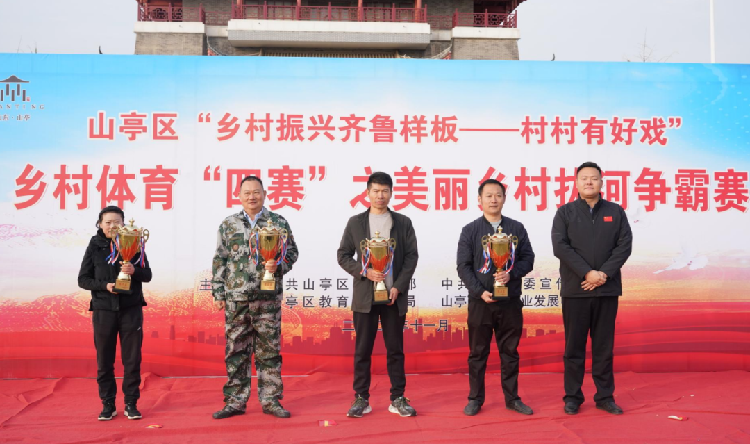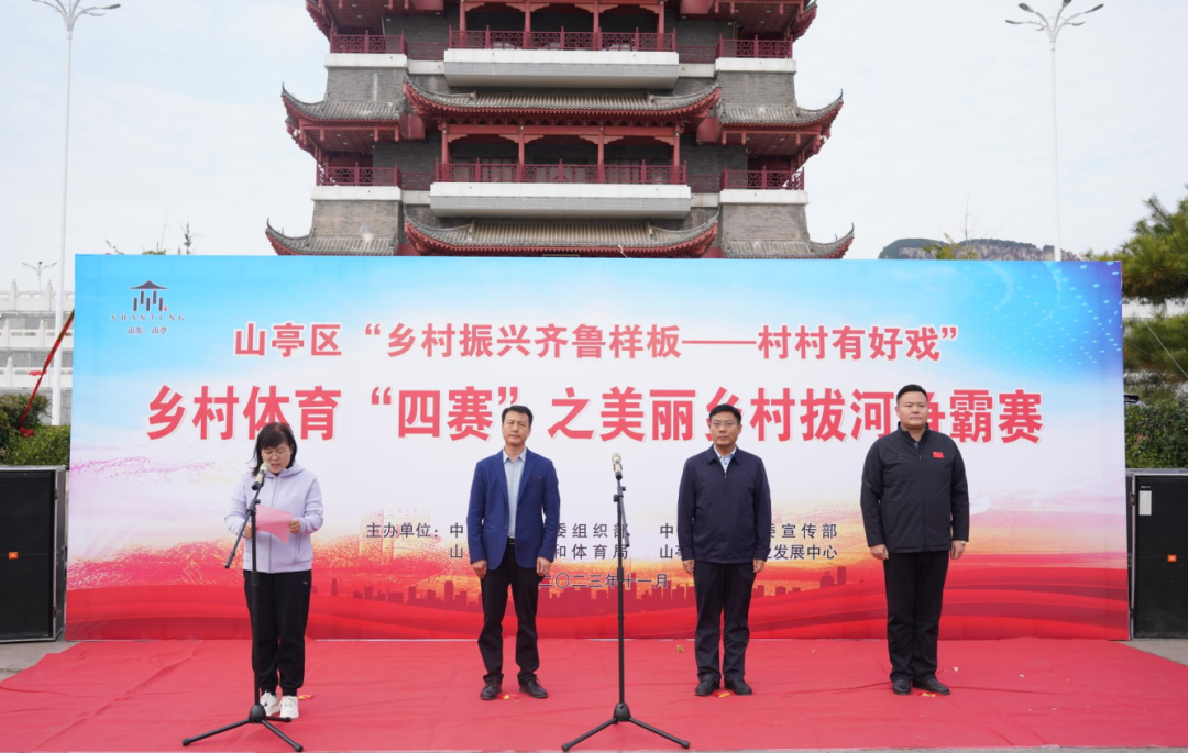 为贯彻习近平总书记打造乡村振兴齐鲁样板重要指示精神,落实山东省“两节、四集、四赛、系列活动”,11月10日下午,山亭区“乡村振兴齐鲁样板——村村有好戏”乡村体育“四赛”之美丽乡村拔河争霸赛决赛在翼云阁广场成功举办,各镇街脱颖而出的10支村居代表队170余人参加了决赛。