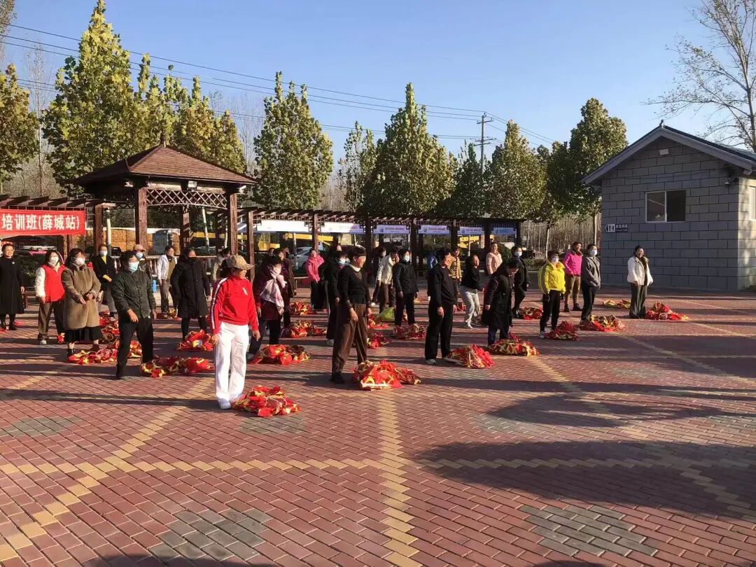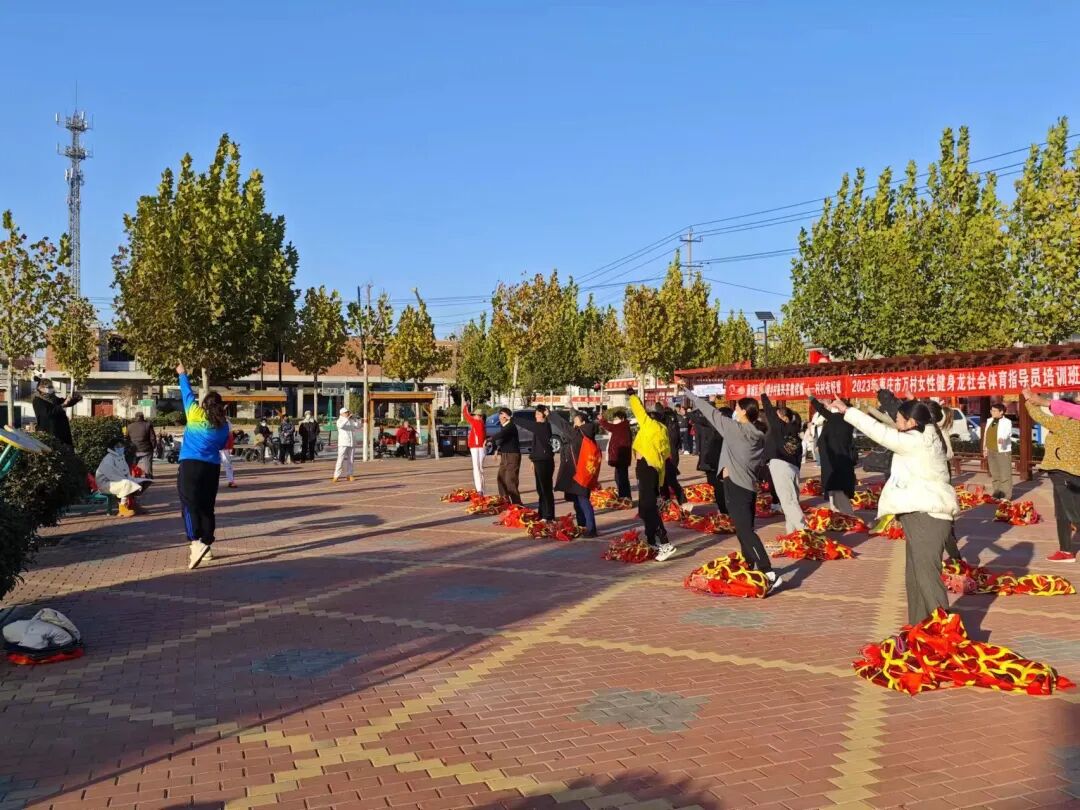 11月16日,薛城区沙沟镇在沙沟西村文体广场举办2023年枣庄市万村女性健身龙社会体育指导员培训班系列活动。