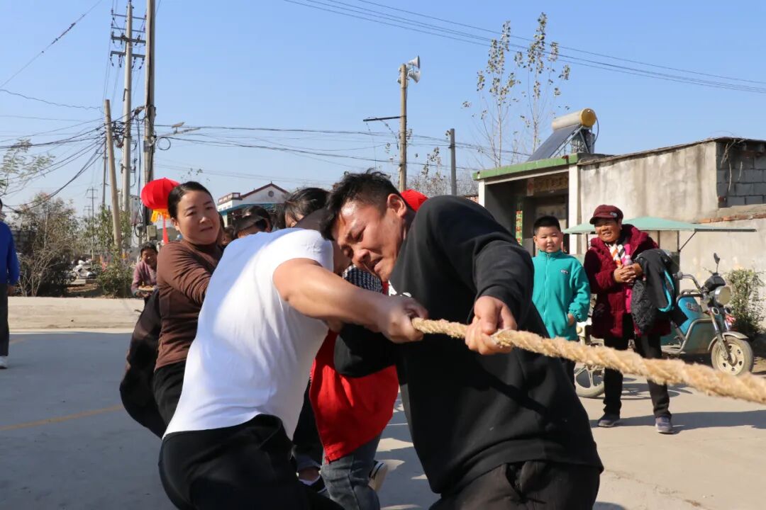 比赛,最激烈的当属集体拔河了,为了引导群众树立团结一心、相亲相爱的集体意识和协作精神,本次运动会将集体拔河搬上了赛程。村民们自告奋勇,踊跃参加,大家相互商讨作战技巧,彼此加油鼓励,拼劲全力的选手们一度让比赛呈现焦灼的僵持状态,全场的呐喊声更是此起彼伏、热闹沸腾。三轮比赛过后,大家握手言和、笑语相迎,邻里一家亲的和谐感在这刻得到了最好的印证。
