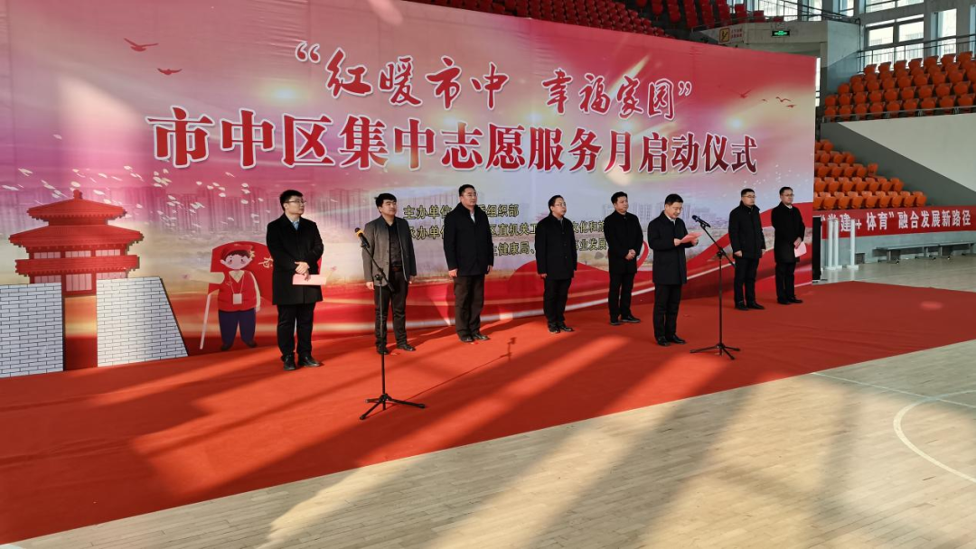 党建的力量,让体育更有活力。1月6日上午,由市中区委组织部主办,区委区直机关工委、区文化和旅游局、区卫生健康局、区体育事业发展中心承办的“红暖市中 幸福家园”市中区集中志愿服务月启动仪式在枣庄市体育馆隆重举行。市体育局党组书记高志勇,市委市直机关工委副书记宋新忠,市委组织部组织二科副科长李建强,市中区委副书记邢军,区委常委、组织部部长王宁等出席活动。