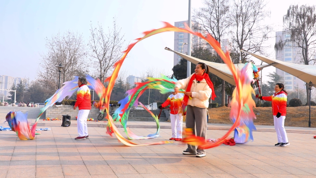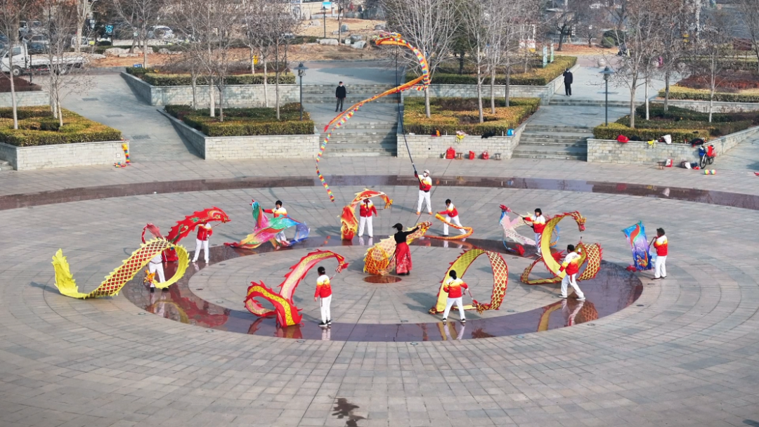 龙腾盛世,共贺新春。在枣庄市市中区,健身爱好者们舞起彩带龙,庆贺龙年。远远望去,一条条彩带犹如群龙腾空,上下翻飞,左右盘旋,传递出浓浓的年味儿。