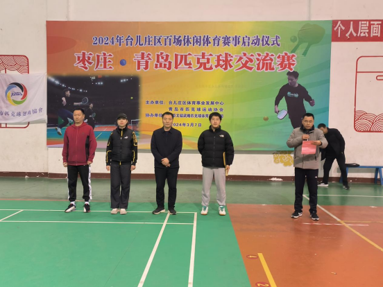 为推动匹克球运动的开展,加强青岛、枣庄两市的匹克球爱好者的沟通交流,促进体育+旅游的发展,打造赛事经济。3月7日,2024年台儿庄区百场休闲赛事启动仪式暨枣庄·青岛匹克球交流赛在台儿庄区体育中心场馆举行。