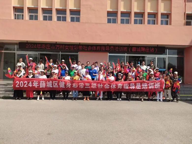 8月1日,2024年枣庄市万村女性社会体育指导员培训班(薛城陶庄站)暨薛城区健身彩带三级社会体育指导员培训班在陶庄镇振兴小学成功举办,来自陶庄镇各村庄的60余名农村女性健身爱好者参加了培训。