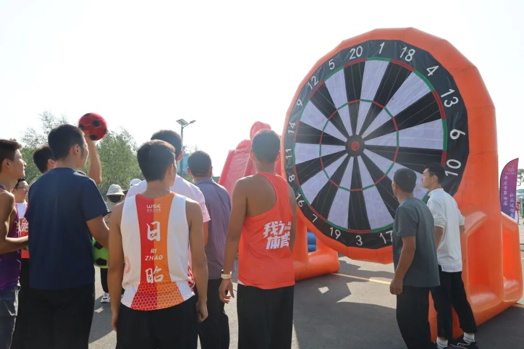 运动会比赛设有欢乐投球手、飞镖足球盘、足球射门、趣味保龄球、一分钟踢毯子、定点投篮等娱乐性、趣味性较强的比赛项目,比赛项目丰富多样,充满趣味,吸引了众多居民的热情参与。