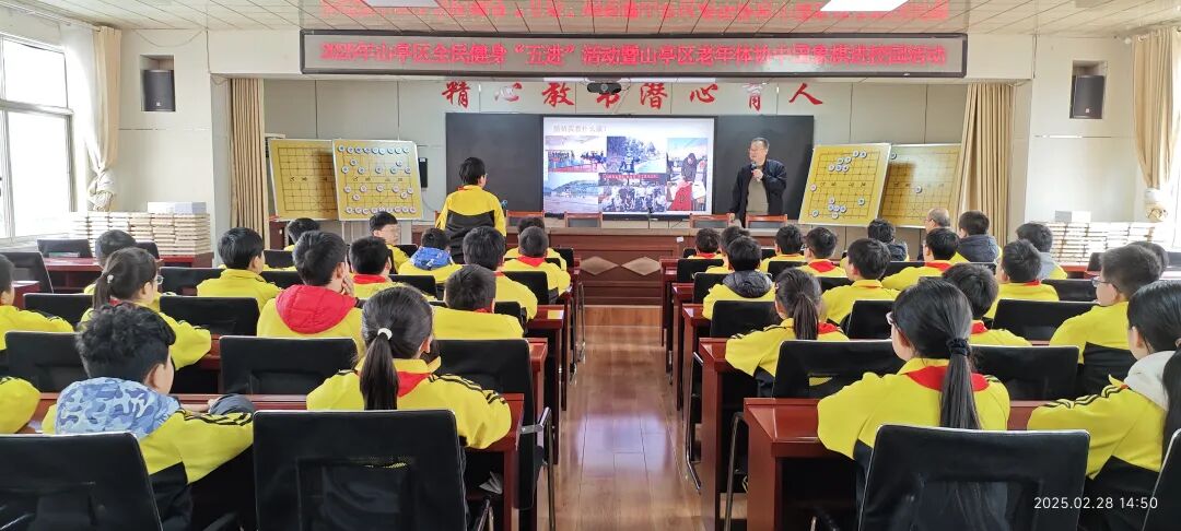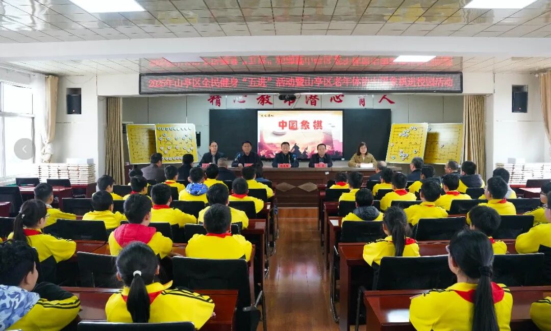 为深化全民健身国家战略,积极响应全民健身“五进”活动号召,2月28日,山亭区老年体育协会联合区教体局、区体育事业发展中心、区实小集团、区体育总会,举行2025年山亭区全民健身“五进”志愿服务暨区老年体协中国象棋进校园系列活动启动仪式,以“银发带青丝”模式,让传统棋艺在校园生根发芽。
