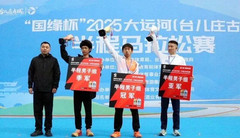 台儿庄区夹坊国武培训中心带来了刚劲有力、气贯长虹的武术表演《国武少年》,精彩的表演赢得了现场观众和运动员们阵阵热烈的掌声和欢呼声。 上午7点30分,与会领导和嘉宾共同为马拉松赛鸣枪发令。随着清脆的发令枪响,来自全国各地及日本、韩国和朝鲜的4800余名选手们如离弦之箭般冲出起跑线。 本次比赛设置男、女半程马拉松和健康跑两个组别,比赛线路精心设计,途经台儿庄古城、小季河风景区、涛沟河湿地等多个景点。阳春三月,草长莺飞,古运河畔绿柳如烟,红梅吐蕊,金黄色的油菜花随风摇曳,散发出阵阵清香,沁人心脾。参赛者在奔跑过程中,既能感受马拉松运动带来的速度与激情,又能领略台儿庄秀美的自然风光和深厚的历史文化底蕴。 经过工作人员的精心统计,来自陕西西安的郭凡以01:09:55的成绩夺得男子组冠军,杨明获得亚军、李瑞强获得季军。来自江苏邳州车夫山镇的王飞飞以01:28:26的成绩夺得女子组冠军,来自山东枣庄台儿庄的王仔秀获得亚军,庞付青获得季军。