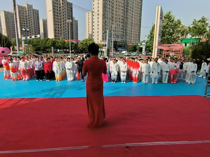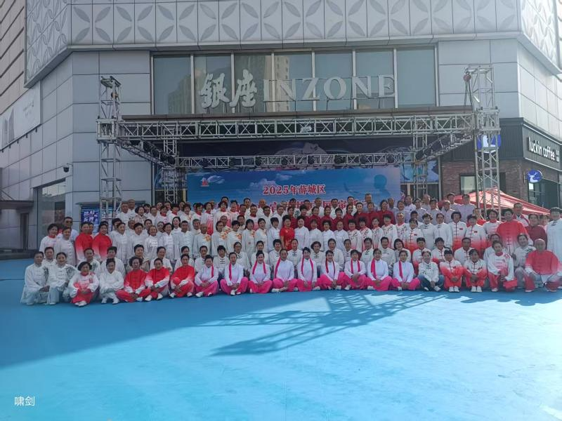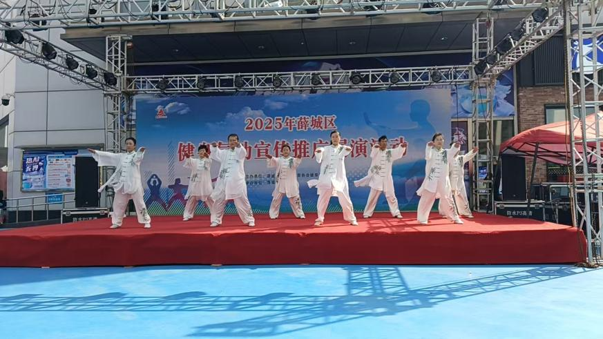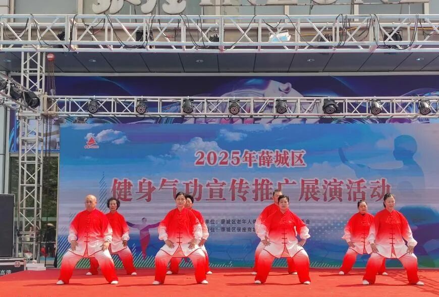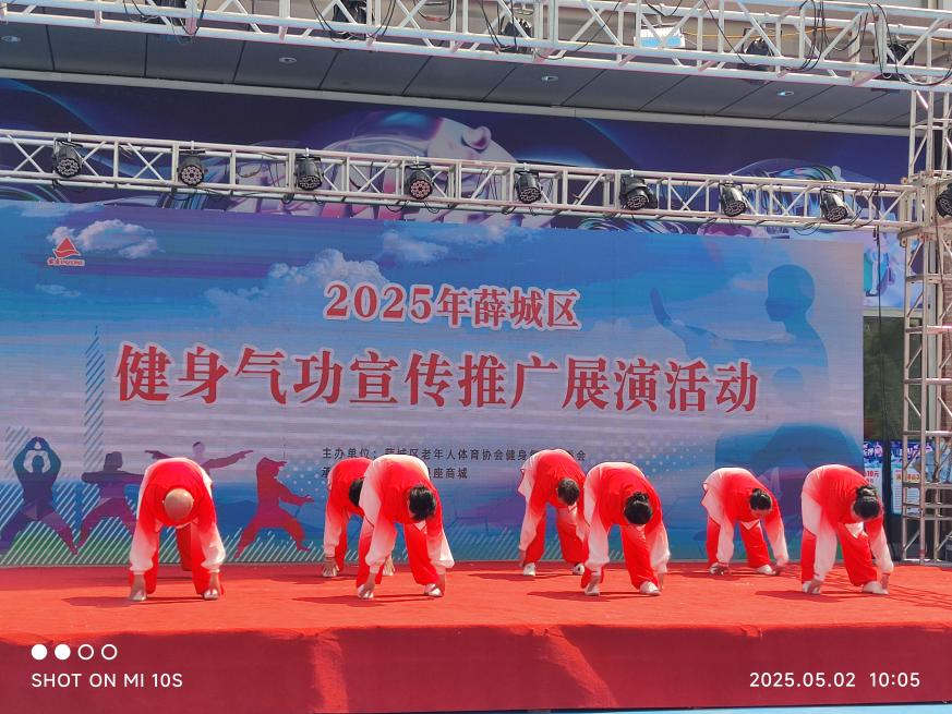 5月2日上午,2025年薛城区健身气功宣传推广展演活动在薛城区银座商城广场举行。