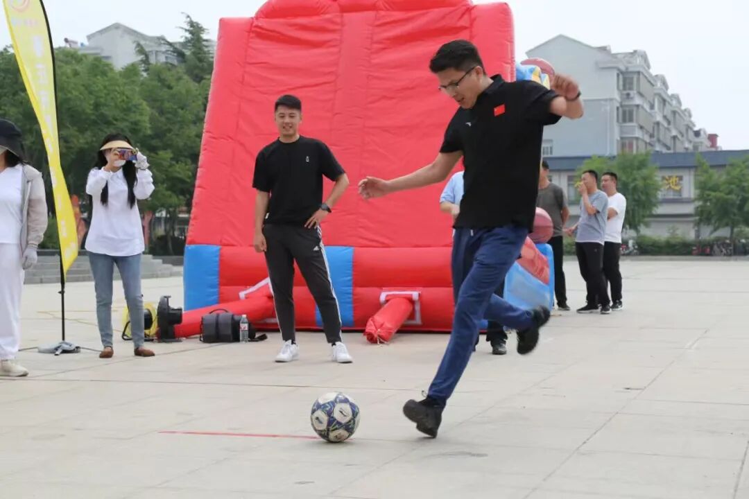 5月14日,枣庄市第五届社区运动会在峄城区古邵镇邵东村火热开幕。项目设置丰富多样:运动会设置有足球九宫格、飞镖足球盘、投沙包、趣味保龄球、夹乒乓球、篮球投篮等趣味性、娱乐性强的项目。运动会面向社区居民,包括驻区单位工作人员、物业公司工作人员、各社团成员等,居民参与热情高。