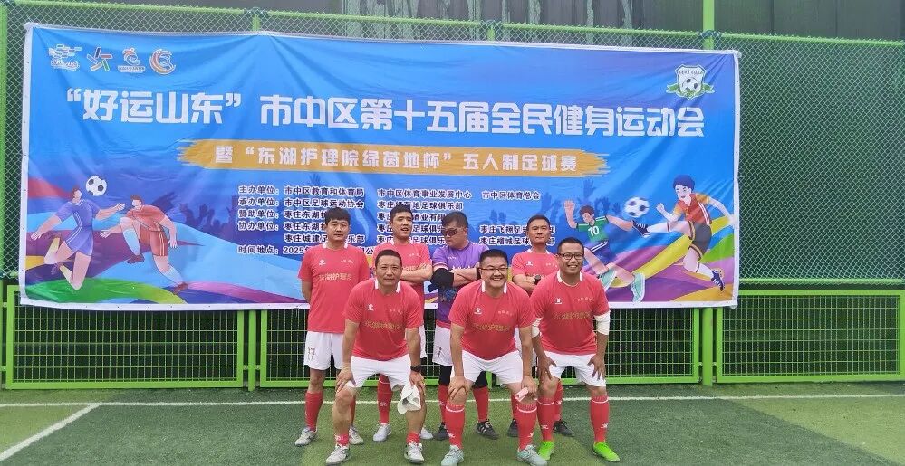 5月25日“好运山东”市中区第十五届全民健身运动会暨“东湖护理院绿茵地杯”五人制比赛在东湖足球场举行。