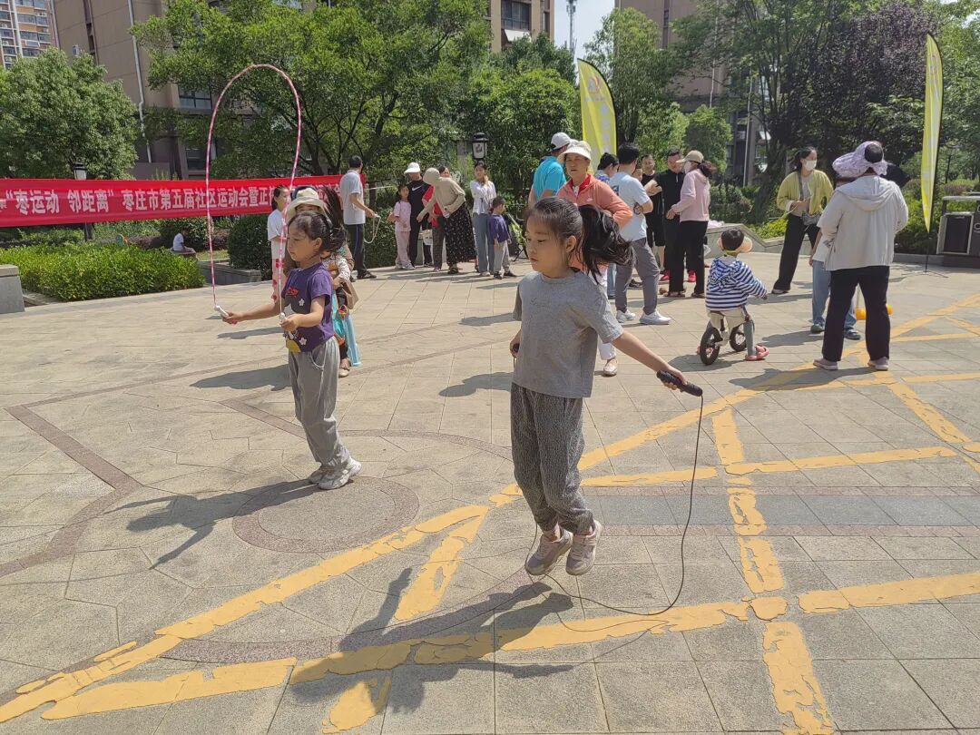 为进一步丰富社区居民的体育文化生活,增强社区凝聚力,营造全民健身的良好氛围,6月2日,枣庄第五届社区运动会在新城街道正信社区激情开赛。本次运动会设置了多个贴近生活、趣味性强的比赛项目,如跳绳、飞镖大转盘、趣味保龄球、篮球投篮、欢乐投球手、夹鸡蛋等,既有适合年轻人的竞技项目,也有适合老年人和儿童参与的休闲项目,充分考虑了不同年龄段居民的需求和特点。