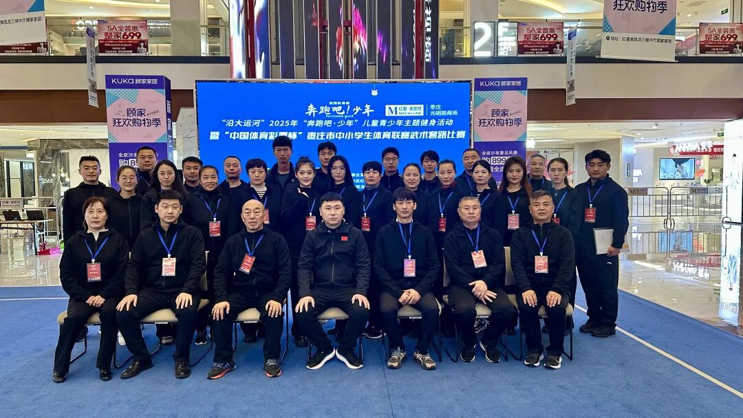 11月7日至9日,“沿大运河”2025年“奔跑吧·少年”儿童青少年主题健身活动暨“中国体育彩票杯”枣庄市中小学生体育联赛武术套路比赛在市中区红星美凯龙枣庄光明路商场隆重举行。市体育局党组成员、一级调研员范卫东出席开幕式。来自全市各中小学校的参赛选手齐聚赛场,以武会友、同台竞技,上演了一场精彩绝伦的武术盛宴。