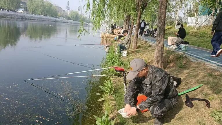 4月18日,2026年薛城区职工钓鱼比赛四月赛在小沙河体育公园举行,50余名钓鱼爱好者参加比赛。