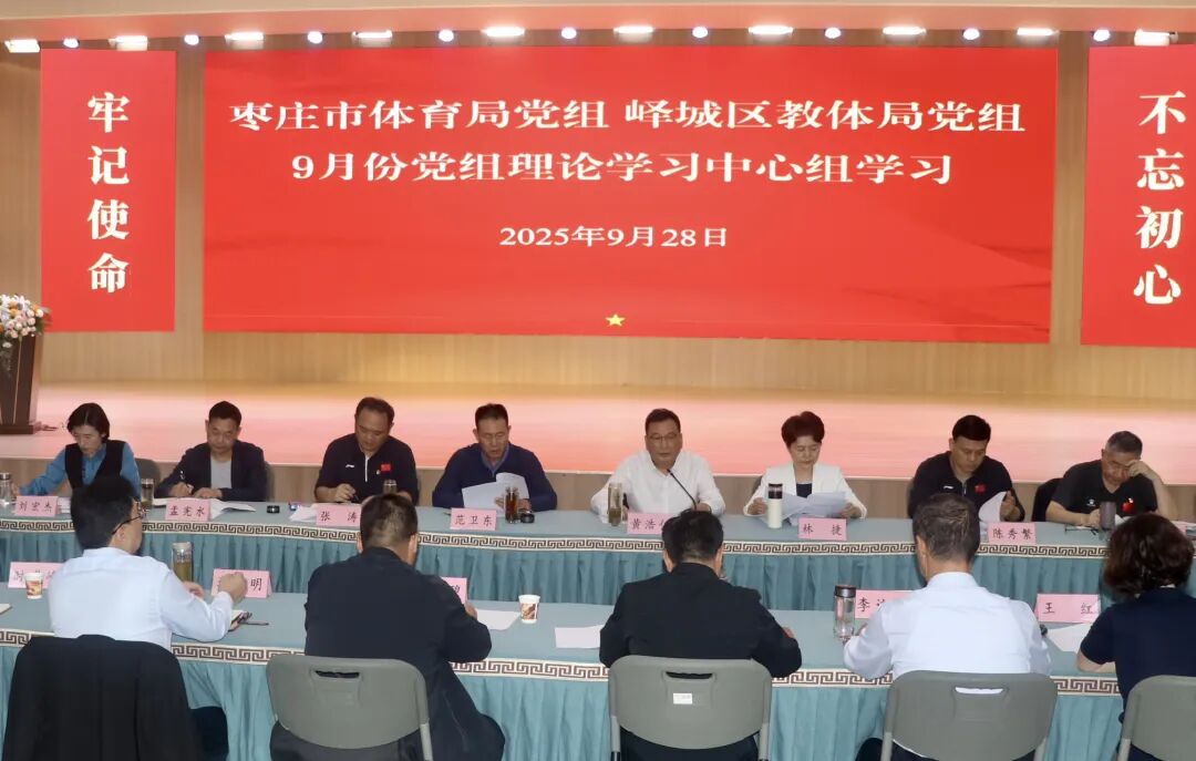 9月28日下午,市体育局党组理论学习中心组联合峄城区教体局党组在峄城区石榴红体育产业基地会议室举行第十次集中学习。党组书记黄浩仁主持,市体育局领导班子成员、县级干部和峄城区教体局党组成员参加了学习。