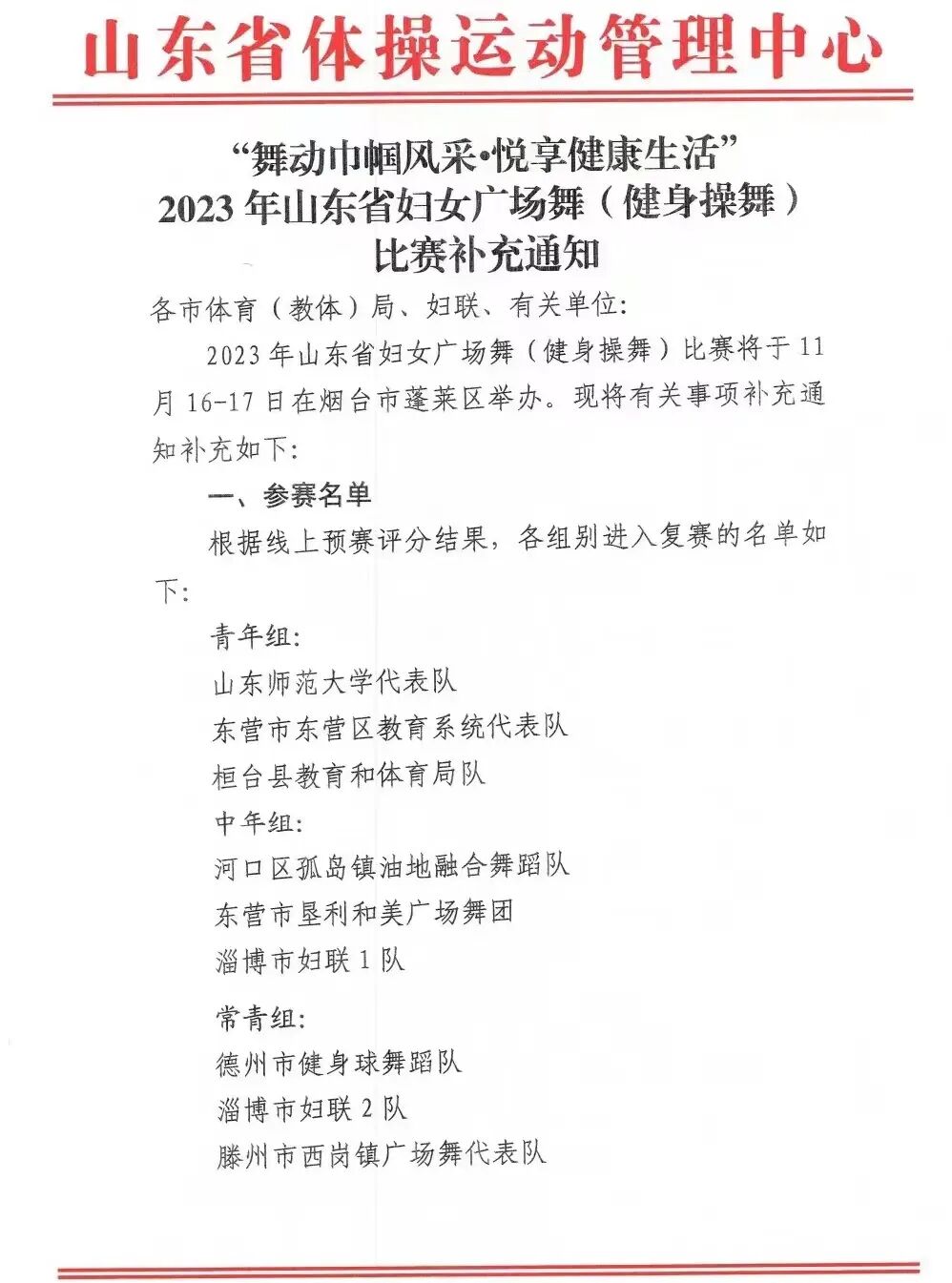 近日,2023年山东省妇女广场舞(健身操舞)比赛在烟台市蓬莱区举办。我市滕州西岗镇广场舞代表队在此次比赛中脱颖而出,取得了山东省妇女广场舞常青组第三名的优异成绩,并获全国妇女广场舞大赛山东站“体育道德风尚奖”称号,展现了我市妇女群众健康向上、奋发有为的精神面貌。