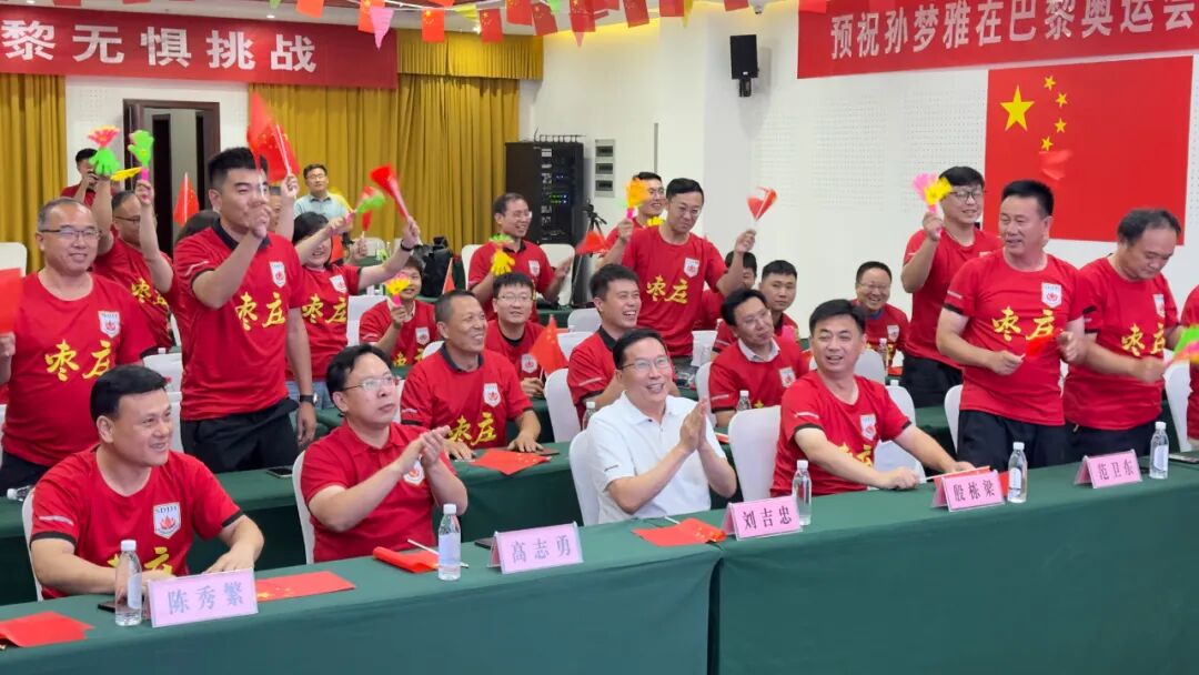 在孙梦雅家中、枣庄文体中心新闻发布厅、市体育运动学校会议室、台儿庄古城观赛点,现场观众激情澎湃、气氛热烈,纷纷挥舞国旗为孙梦雅加油助威。