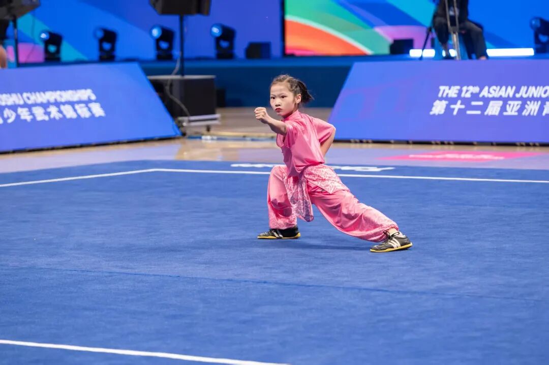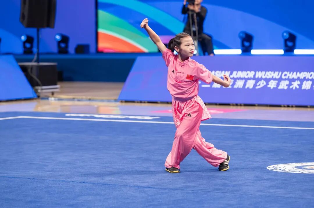 本次亚洲青少年武术锦标赛吸引了来自24个国家和地区的467名参赛者。在这场汇聚亚洲各国少年英才的赛事中,王艺芮大放异彩,她的一招一式刚劲有力、行云流水,将武术的力量美与韵律美展现得淋漓尽致。