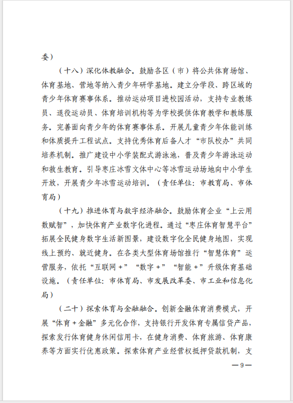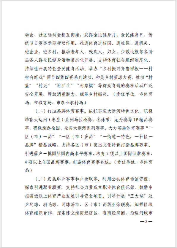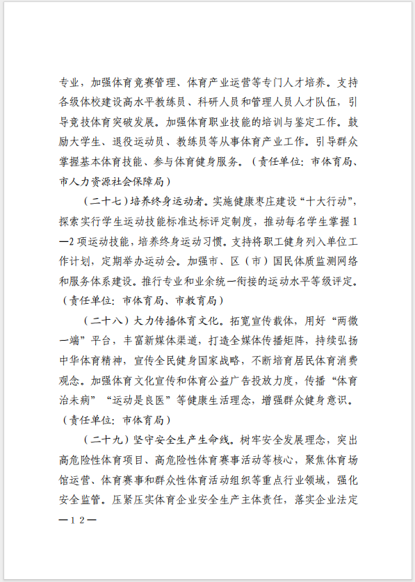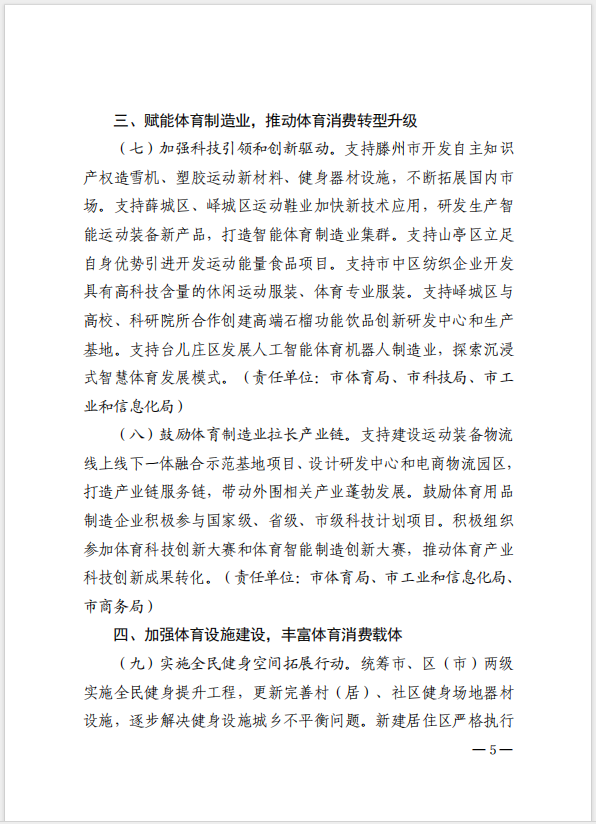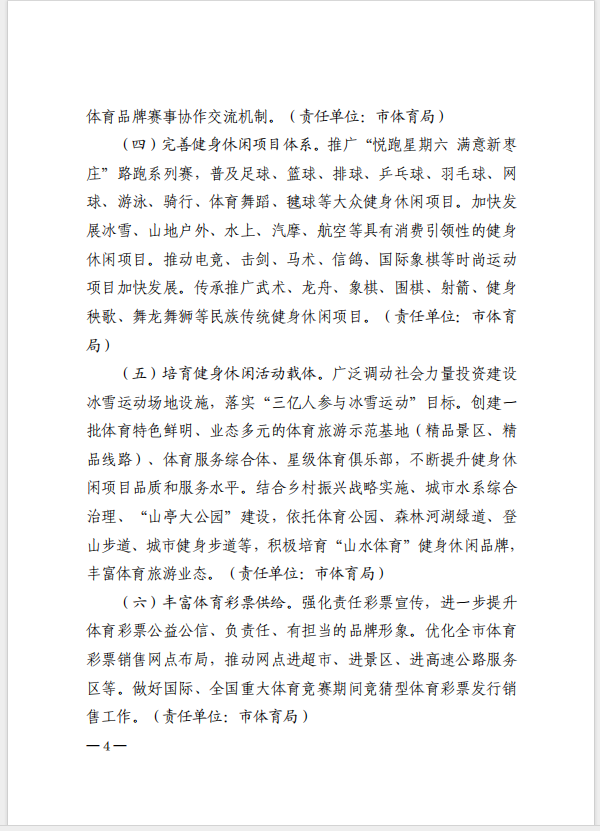 为深入实施全民健身国家战略,促进体育消费持续提质升级,推动体育产业成为国民经济支柱性产业,近日,市政府出台《枣庄市推动体育产业高质量发展进一步提振扩大体育消费的若干措施》。