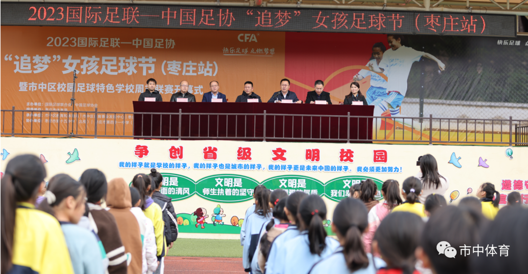 11月10日,2023国际足联-中国足协“追梦”女孩足球节(枣庄站)开幕式在逸夫小学西昌路校区举行。本次活动由国际足球联合会、中国足球协会主办,枣庄市体育局指导,市中区教育和体育局、市中区体育事业发展中心、市中区足球运动协会、枣庄市逸夫小学西昌路校区承办。