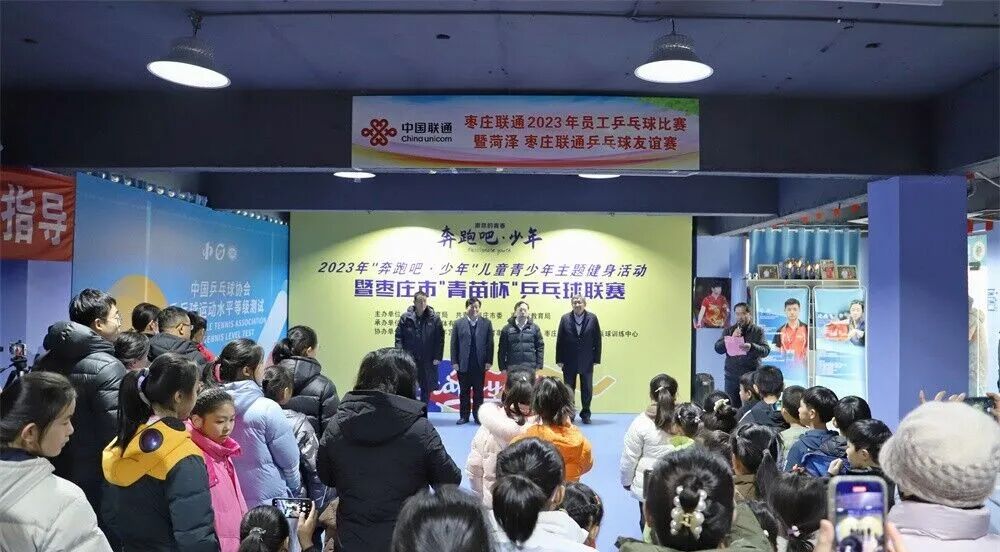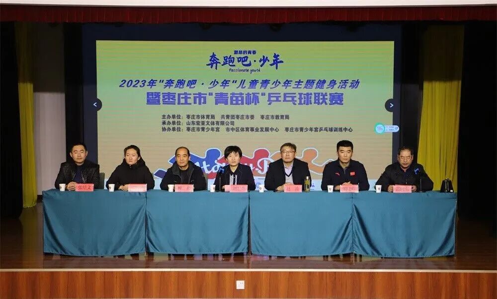 为落实健康枣庄“十大行动”建设,提升群众体育生活满意度工作要求,以及落实“乡村振兴齐鲁样板——村村有好戏”乡村体育“四赛”活动开展的具体体现,通过组织丰富多样的青少年体育竞赛,积极推进“奔跑吧·少年”儿童青少年主题健身体育活动在我市常态化、系统化、科学化的开展,12月15日,由枣庄市体育局、共青团枣庄市委、枣庄市教育局联合主办,山东宏亚文体有限公司承办,枣庄市青少年宫及青少年宫乒乓球训练中心协办的“2023年‘奔跑吧·少年’儿童青少年主题健身活动暨枣庄市首届“青苗杯”乒乓球联赛在市青少年宫拉开帷幕。市体育局党组成员、副局长刘宏杰、共青团枣庄市委副书记赵波及市青少年宫、市中团区委、市中区教体局等有关部门的负责同志出席了开幕式。