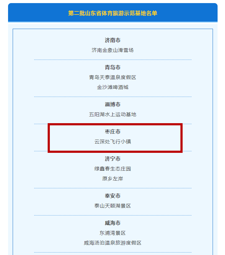 12月18日,省文化和旅游厅联合省体育局公布第二批山东省体育旅游示范基地名单,其中,我市云深处飞行小镇入选!