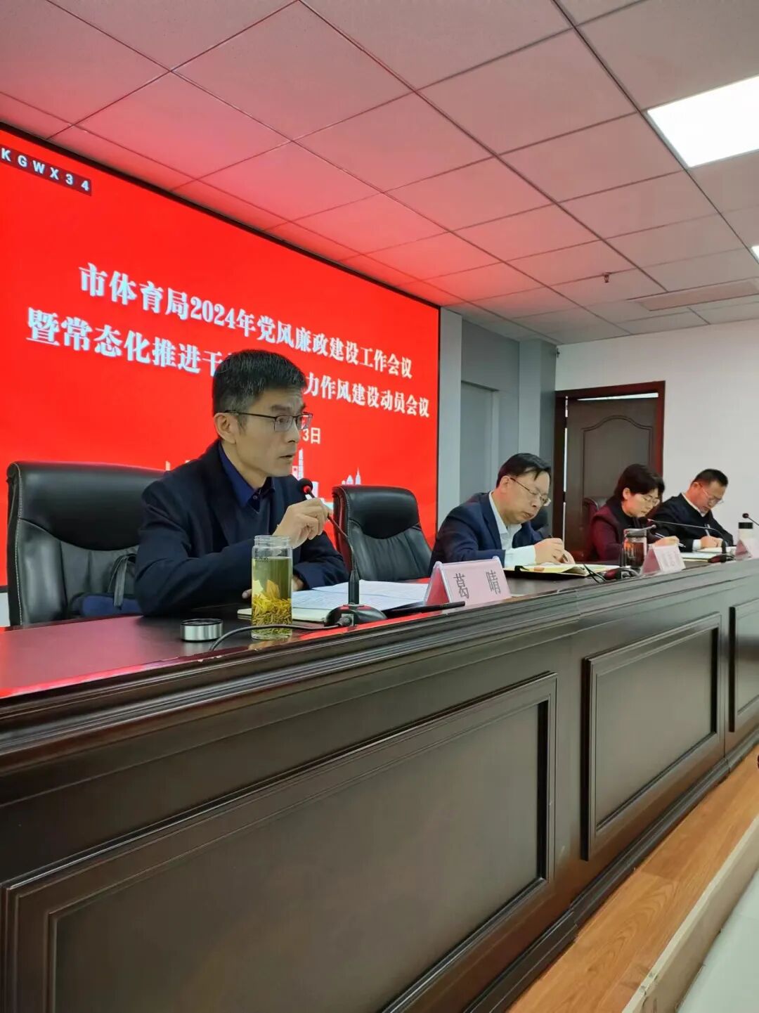 3月13日,枣庄市体育局召开党风廉政建设工作暨常态化推进干部思想能力作风建设动员会议,总结2023年党风廉政建设工作,安排部署2024年重点工作任务。市体育局党组书记高志勇出席会议并讲话,市纪委监委派驻市教育局纪检监察组组长葛晴到会指导并讲话。局机关全体工作成员,局属各单位领导班子成员,各支部书记、纪检委员参加了会议。会议中,高志勇代表局党组与局属单位负责人签订了《党风廉政建设责任书》。高志勇强调,2024年是全面贯彻落实党的二十大精神的关键之年,是深入实施“十四五”规划的攻坚之年,市体育局将坚持和加强党的全面领导,守正创新,坚定信心,深入推进全面从严治党,切实履行党风廉政建设政治责任,坚持严的基调、严的措施、严的氛围,推动责任从严、监督从严、治理从严,以永远在路上的定力和韧劲,努力开创枣庄体育党风廉政建设新局面。高志勇要求,各级党组织要在严明政治纪律和政治规矩上做到旗帜鲜明,在修好坚定理想信念终身课题上做到率先垂范,在守好廉洁自律底线上做到躬身践行,以永远在路上的坚韧和执着,推动全面从严治党向纵深发展。一是要凝心铸魂,压实责任,强化管党治党合力。深入学习贯彻习近平总书记关于党的自我革命的重要思想,坚定拥护“两个确立”,坚决做到“两个维护”,深刻把握党的二十大精神以及中纪委、省纪委、市纪委全会的部署要求,不断夯实责任链条,强化责任落实,改进工作作风,自觉用党的新思想新理论武装头脑,将学习成果转化为推动工作、服务民生的生动实践和推动枣庄体育高质量发展的具体举措。二是要严字当头,保持定力,持之以恒正风肃纪。加强廉政教育,强化廉政风险防控,抓好巡察反馈问题整改落实长效化,持续纠治“四风”,深化不敢腐、不能腐、不想腐一体推进实践探索,严格政治监督,严守纪律红线,严明纪法规矩,严肃执纪问责。三是要聚焦重点,攻坚克难,靶向发力祛除顽疾。紧盯影响发展环境背后的作风顽疾,坚决纠治不担当不作为、慢作为乱作为等不良风气,惩治民生领域“微腐败”、铲除妨碍惠民政策落实“绊脚石”。紧盯主题教育查摆出的问题,认真做好“后半篇”文章,紧盯巡察中发现的问题,全面完成整改落实,紧盯形式主义的顽疾问题,切实做到防微杜渐,紧盯奢靡享乐歪风隐形变异问题,不断强化以小见严。四是要锐意进取,强化担当,围绕中心服务大局。坚持以党建为引领,大力弘扬求真务实的工作作风,在落实市委、市政府重大决策部署及全局年度重点工作中笃行不怠,构建更加风清气正、健康向上的政治生态。
