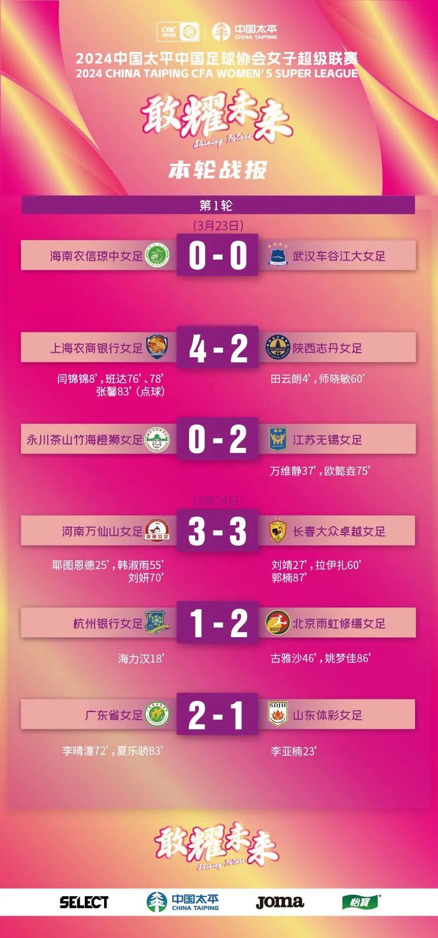3月24日,2024中国太平中国足球协会女子超级联赛第一轮,山东体彩女足客场对阵广东女足,李亚楠为山东女足上半场取得领先,下半场最后阶段,山东体彩女足连丢两球,最终1-2不敌对手。