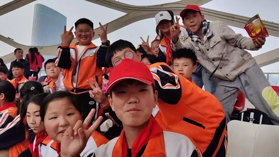 在现场的北看台观赛区,来自偏远山区的500多名学生正兴奋的观看比赛!
