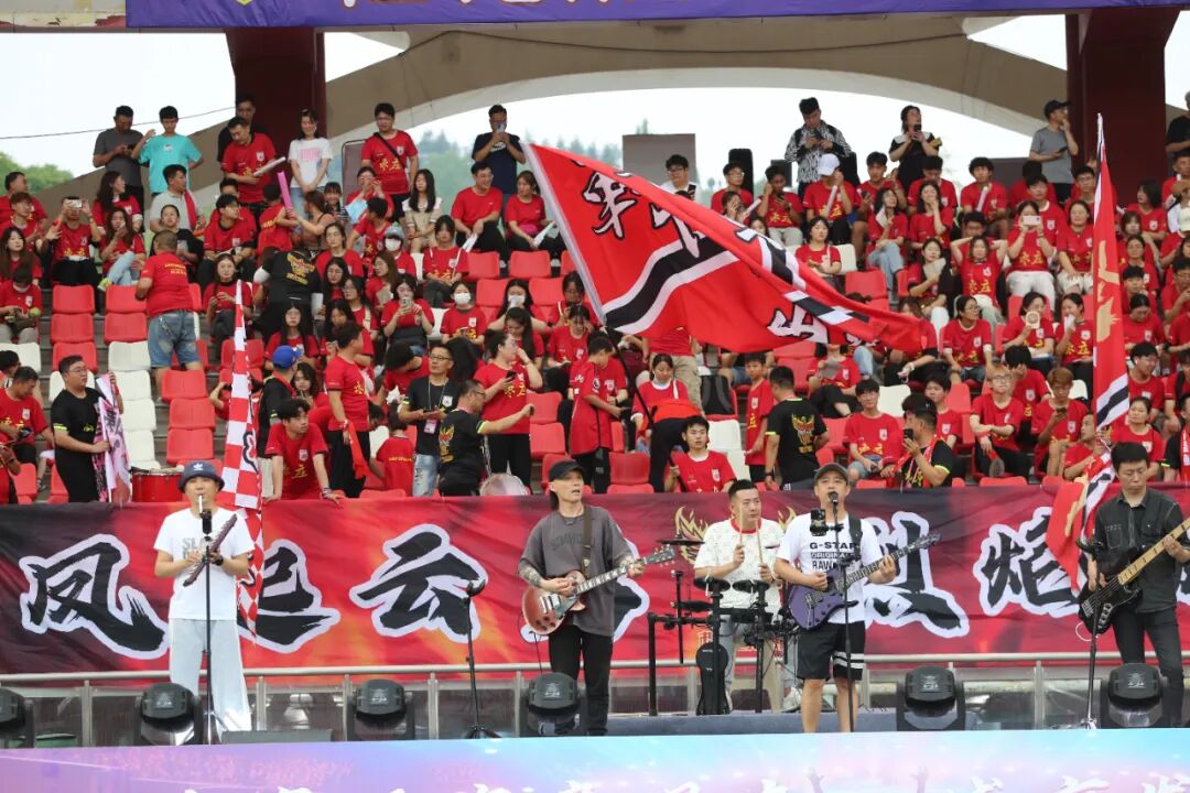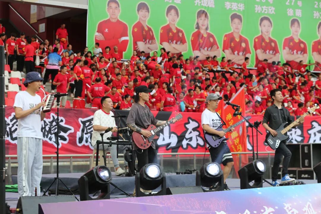 6月16日下午,在女超联赛山东赛区组委会与赛事主办方的组织下,来自枣庄本地的旁观者乐队,在枣庄文体中心远路体育场为山东体彩女足的第4次主场战进行开场助演。