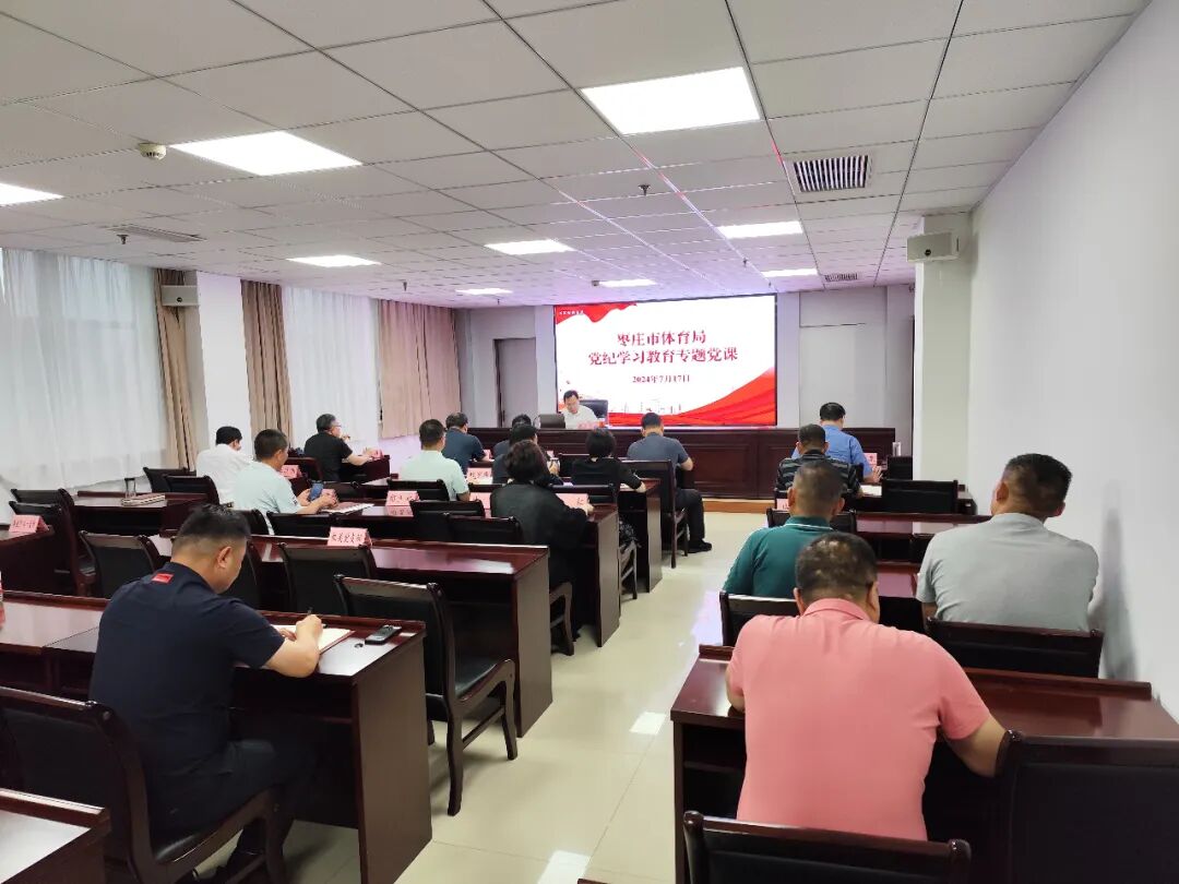 为进一步推进党纪学习教育走深走实,不断提升党员、干部遵规守纪的自觉性、坚定性。7月17日下午,市体育局党组书记高志勇以“严肃党纪以学促进 知责于心履责于行”为题讲授党纪学习教育专题党课。局系统全体县级领导干部,局机关党支部、市体育事业发展中心第一党支部、市体育总会秘书处党支部全体党员参加会议。会上,高志勇介绍了党纪建设发展历史及《中国共产党纪律处分条例》(以下简称《条例》)的修订历程,围绕“学纪、知纪、明纪、守纪”四个方面,聚焦“六个纪律”,对《条例》进行深入浅出的讲解,引导党员、干部认真学习、理解《条例》,准确把握《条例》的内涵要义。
