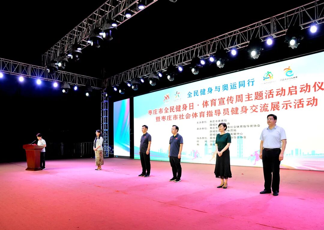 在我国第16个“全民健身日”到来之际,8月8日,2024年枣庄市全民健身日·体育宣传周主题活动启动仪式暨枣庄市社会体育指导员健身展演在薛城区临山广场举办。市政府副秘书长殷栋梁同志宣布活动开幕。市体育局党组书记高志勇,市体育局党组成员、副局长刘宏杰,薛城区教体局党组书记、局长种法立出席活动,薛城区政府副区长周海燕致辞。市体育局局长林捷主持活动。