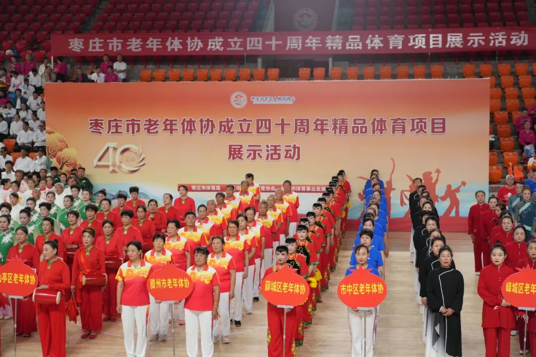 金风送爽、秋色宜人。10月13日上午,庆祝枣庄市老年人体育协会成立40周年精品项目展演在枣庄体育中心体育馆隆重开幕。