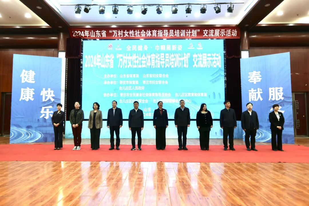 11月30日,2024年山东省“万村女性社会体育指导员培训计划”交流展示活动在枣庄台儿庄举办。来自全省16个地市的17支队伍共计300余人齐聚台儿庄古城,为全民健身事业和乡村振兴发展注入活力。