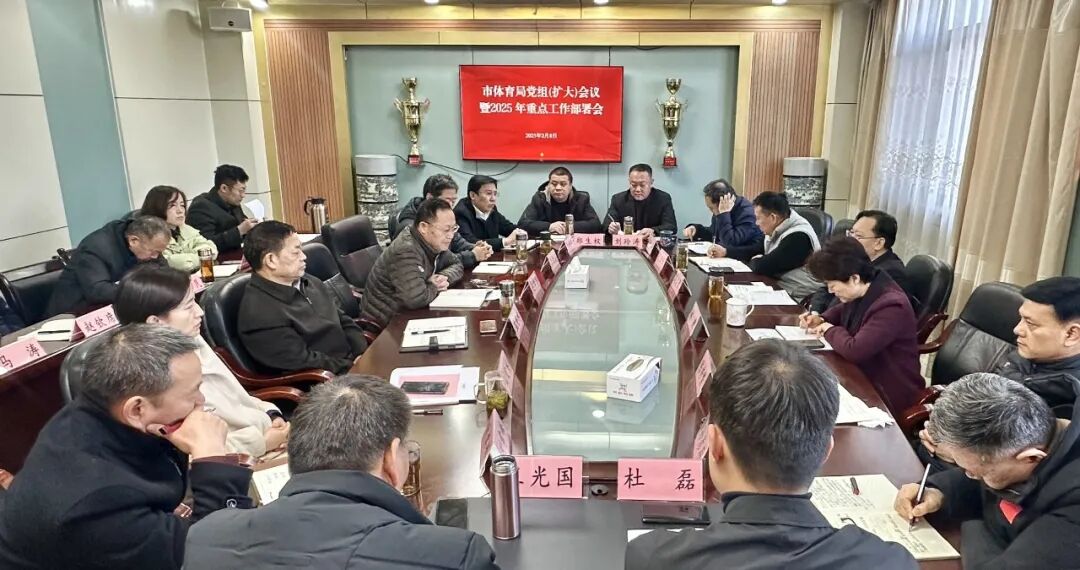 2月8日,市体育局召开党组(扩大)会议暨2025年重点工作部署会,深入学习贯彻“新春第一讲”精神,分析研判新一年工作形势,谋划部署全年重点工作任务,动员全体干部职工以“开局即决战、起步即冲刺”的姿态,迅速收心归位、聚焦重点、狠抓落实,确保全年体育工作开好局、起好步。市体育局党组书记高志勇、局长林捷出席会议并讲话,局中层及以上领导干部参加会议。