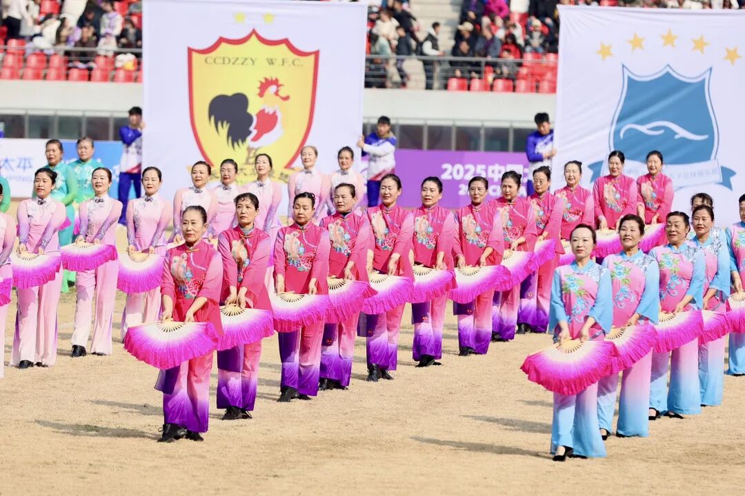 开幕式现场,地域特色与现代活力激情碰撞。极具枣庄传统韵味的秧歌舞率先亮相,舞者们身着绚丽服装,手持彩扇,步伐轻盈矫健,一招一式尽显民间艺术的独特魅力;青春靓丽的啦啦队带来活力四射的舞蹈,瞬间点燃现场气氛,为运动员和观众带来一场震撼的视听盛宴,也为新赛季的女超联赛注入满满激情与活力。