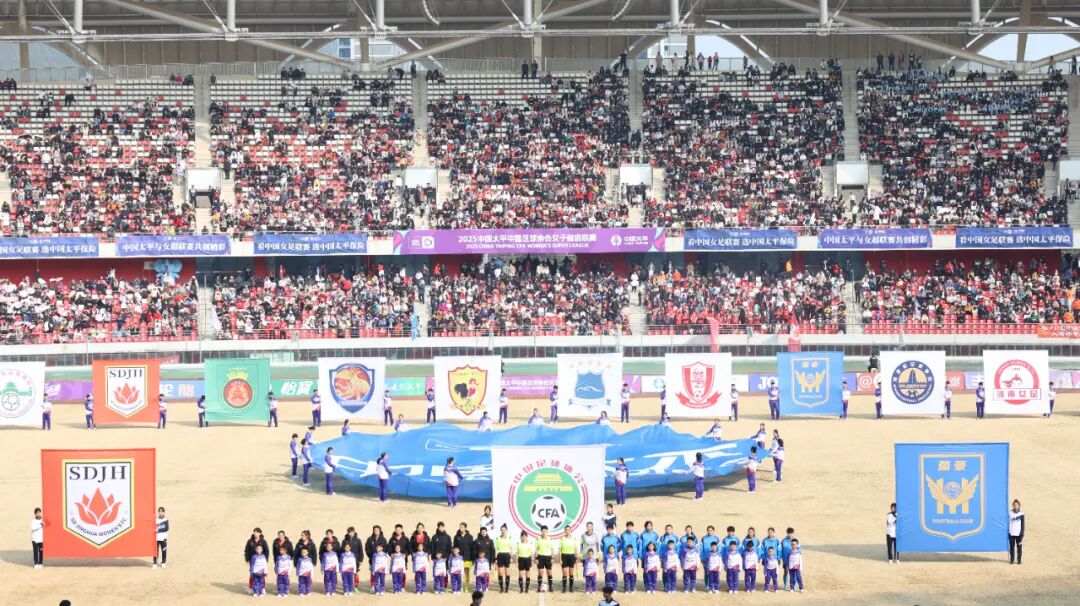 3月8日,2025中国太平中国足球协会女子超级联赛在枣庄文体中心体育场盛大开幕,揭幕战中,山东体彩女足迎战江苏无锡女足,精彩赛事吸引了15876名观众现场观赛,正式开启新一年女子足坛的高光时刻。