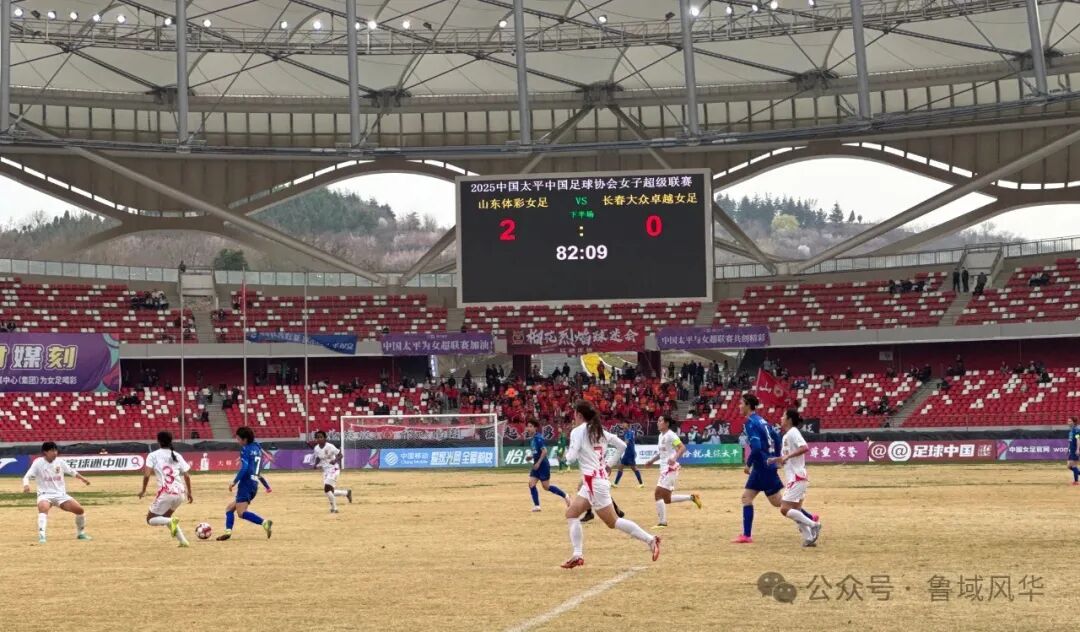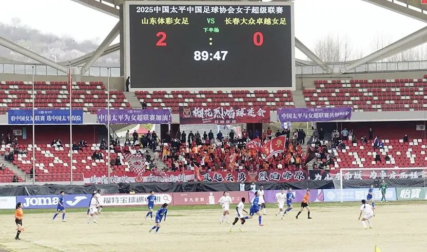 3月23日下午3点,2025中国足球协会女子超级联赛第四轮,山东体彩女足坐镇主场迎战长春大众卓越女足,以2:0取的主场胜利。现场16097名观众共同见证山东体彩女足三连胜!