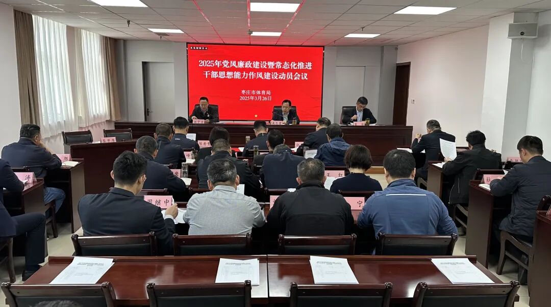 3月26日,枣庄市体育局召开2025年党风廉政建设会议暨常态化推进干部思想能力作风建设动员会议。市体育局党组书记高志勇出席会议并讲话,市纪委监委派驻市教育局纪检监察组组长葛晴出席会议。局机关全体工作成员,局属各单位领导班子成员,各支部书记、纪检委员参加了会议。会议中,高志勇代表局党组与局属单位负责人分别签订了《党风廉政建设责任书》。