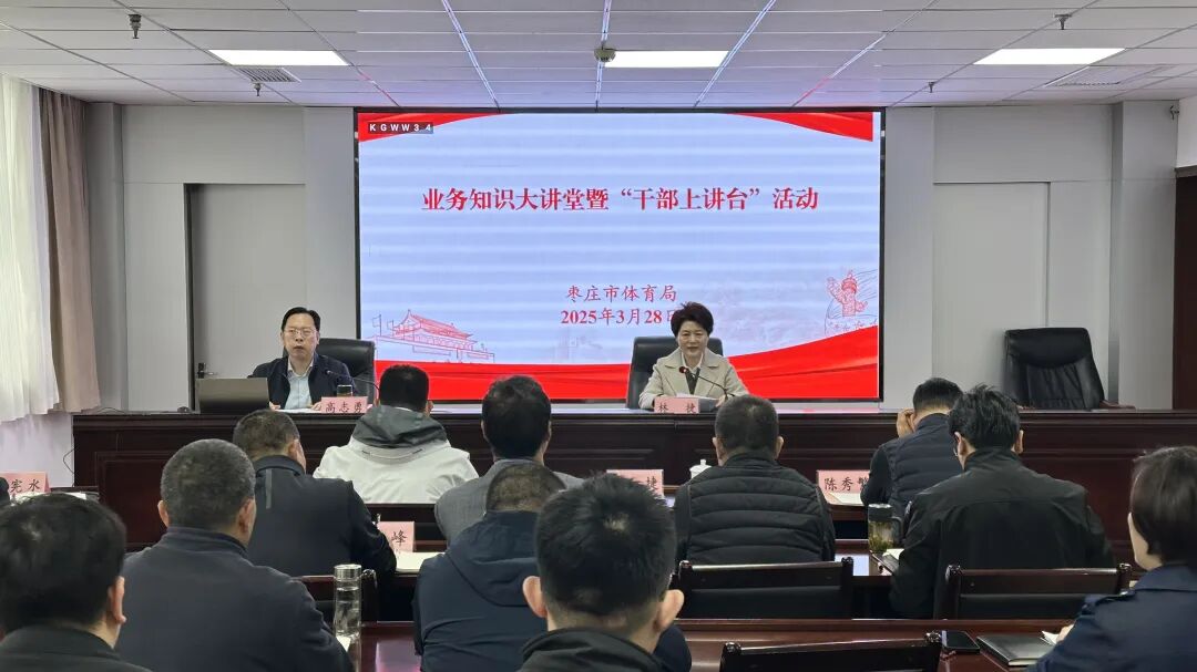 为持续深化干部专业化能力提升工程,进一步加强干部思想能力作风建设,3月28日,市体育局正式启动2025年度“业务知识大讲堂”暨“干部上讲台”系列活动。局党组书记高志勇以《落实〈提振消费专项行动方案〉扩大体育消费》为题作首场专题授课。局长林捷主持学习,局机关、体育事业发展中心、竞技体育发展中心全体干部职工参加学习。