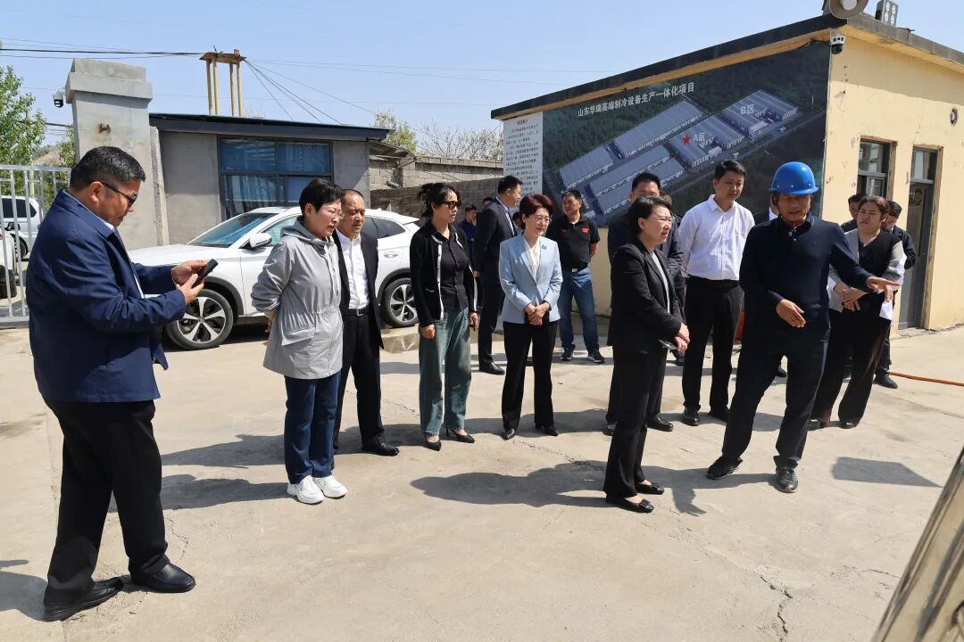 调研组一行先后深入枣庄市薛城区鸿阳热力有限公司2024-2026年城市供热设施改造提升工程、山东华瑞制冷科技有限公司高端制冷设备生产一体化项目现场,详细了解项目的进展、企业发展情况、存在问题与困难。