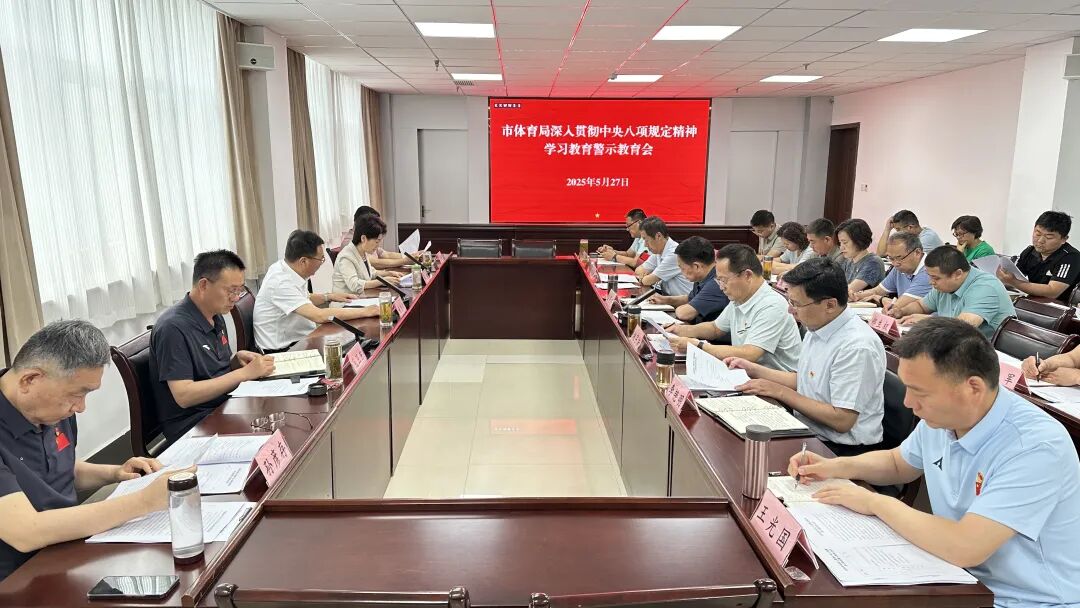 5月27日,市体育局召开违反中央八项规定精神警示教育会议,深入学习贯彻习近平总书记关于加强党的作风建设的重要论述和关于开展深入贯彻中央八项规定精神学习教育的重要讲话重要指示精神,认真落实全市警示教育会精神,剖析典型案例,强化以案说德、以案说纪、以案说法、以案说责,坚定不移深化作风建设,为体育强市建设提供坚强保障。会议学习了《党政机关厉行节约反对浪费条例》,通报了有关典型案例,观看了全市违反中央八项规定精神典型案例警示录。市体育局党组书记黄浩仁主持并讲话。局机关全体人员,局属单位班子成员,各支部书记、纪检委员参加会议。