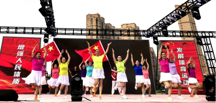 展演活动紧扣“发展体育运动 增强人民体质”主题,巧妙融合传统与现代元素,尽显群众体育的蓬勃生机。市区两级体育社会组织依次登台,街舞、健身操舞动感奔放,旗袍走秀展示优雅婉约,霹雳舞青春四射,太极扇刚柔并济,跳绳展现时代少年的蓬勃朝气。表演者踏着明快节奏,用优美舞姿诠释对体育健身的热爱,充分展现了枣庄群众昂扬向上的精神风貌,最后,活动在集体歌唱祖国中圆满落下帷幕。