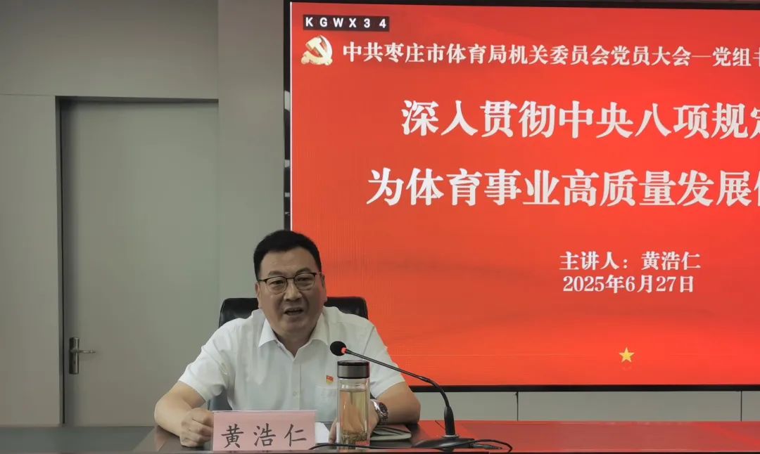 在专题党课环节,黄浩仁同志以“深入贯彻中央八项规定精神为体育事业高质量发展保驾护航”为题,展开了一场内容丰富、思想深刻的授课。黄浩仁指出,在全党开展深入贯彻中央八项规定精神学习教育,是巩固深化主题教育和党纪学习教育成果、纵深推进全面从严治党的重要举措,是密切党群干群关系、巩固党的执政基础的必然要求,更是推进中国式现代化的有力保障。党课中,黄浩仁同志结合体育事业工作实际,深入剖析了中央八项规定精神的核心要义与深刻内涵。从强化理论学习、精准查摆问题、压实整改责任等多个方面,对全体党员干部提出了明确要求。黄浩仁强调,要坚持理论学习常态化,深学细悟习近平新时代中国特色社会主义思想特别是关于作风建设、中央八项规定精神的重要论述,明确行为标尺,提升党性修养。黄浩仁要求,全局党员干部要结合自身和工作实际直面作风突出问题,深入对照查摆,以典型案例为镜鉴,强化警示教育,同时坚持 “开门搞教育”,广泛征求群众意见,切实解决民生痛点难点问题。在整改落实上,要针对查摆问题建立台账,明确措施、责任人和时限,紧盯重点环节及关键人群,严防 “四风” 隐形变异,将整改落实纳入从严治党责任清单及党建考核,确保责任层层压实,以作风建设新成效推动体育事业高质量发展。