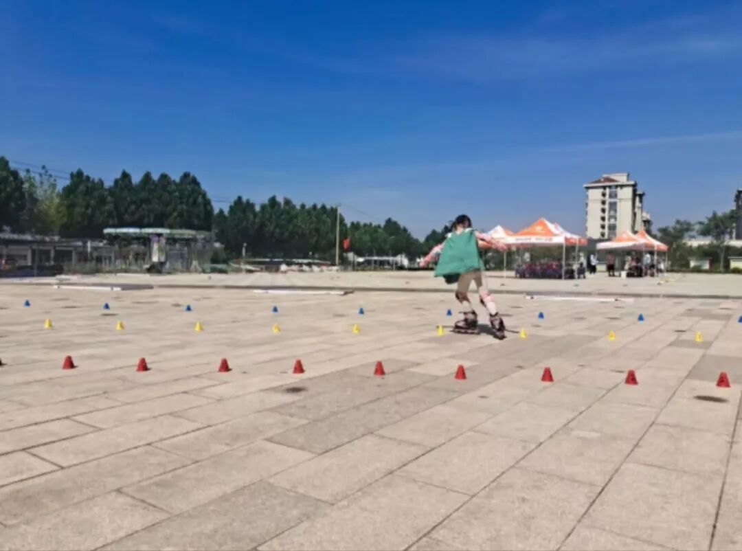 比赛现场,运动员们个个精神抖擞、活力四射。他们脚踩轮滑鞋,在赛道上灵活穿梭,腾挪跳跃间尽显轮滑运动的速度与灵动。每一次流畅的滑行、每一个精准的转向,都展现出选手们扎实的功底与对这项运动的热爱,精彩的表现赢得了现场观众的阵阵掌声与欢呼声。