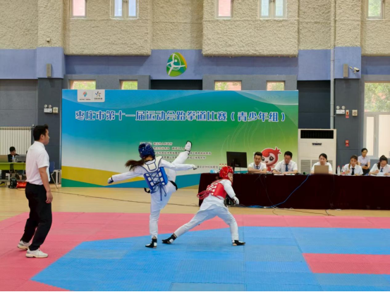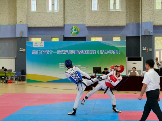 7月26日,枣庄市第十一届运动会跆拳道比赛在薛城区龙潭实验学校体育馆圆满结束。