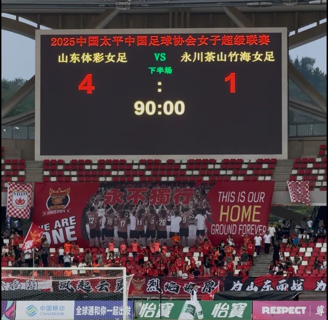 虽然永川茶山竹海女足在最后时刻扳回一球,但已无法改变比赛结果。最终,山东体彩女足在主场收官战中4-1战胜对手,用一场胜利回馈了整个赛季支持球队的主场球迷。