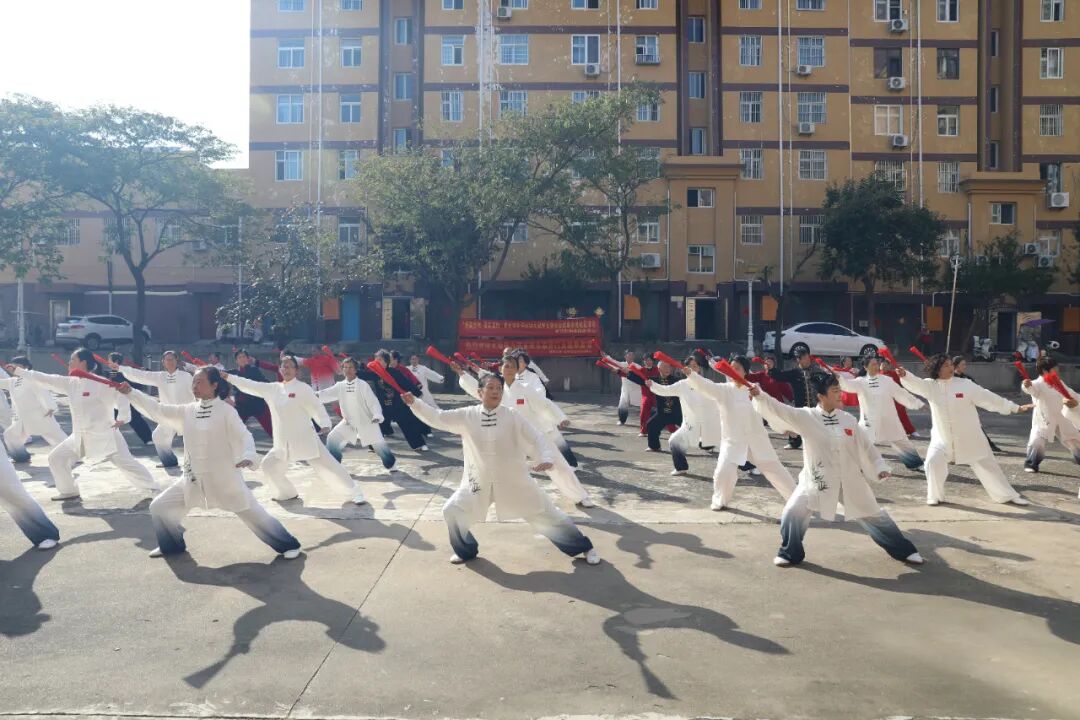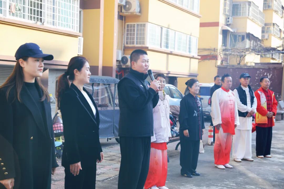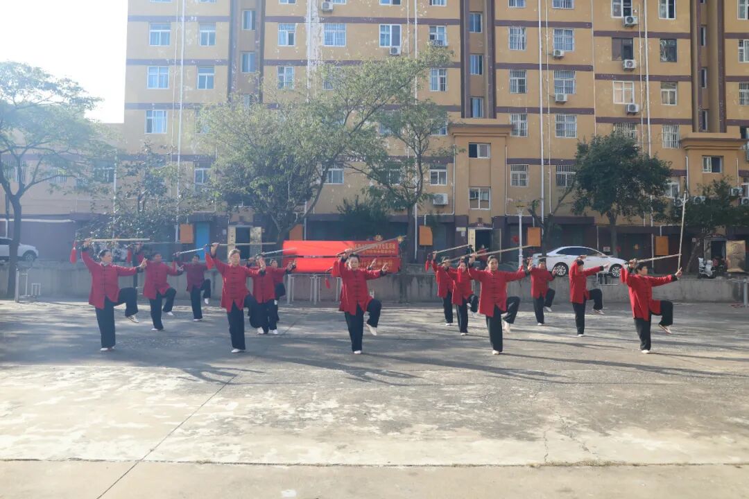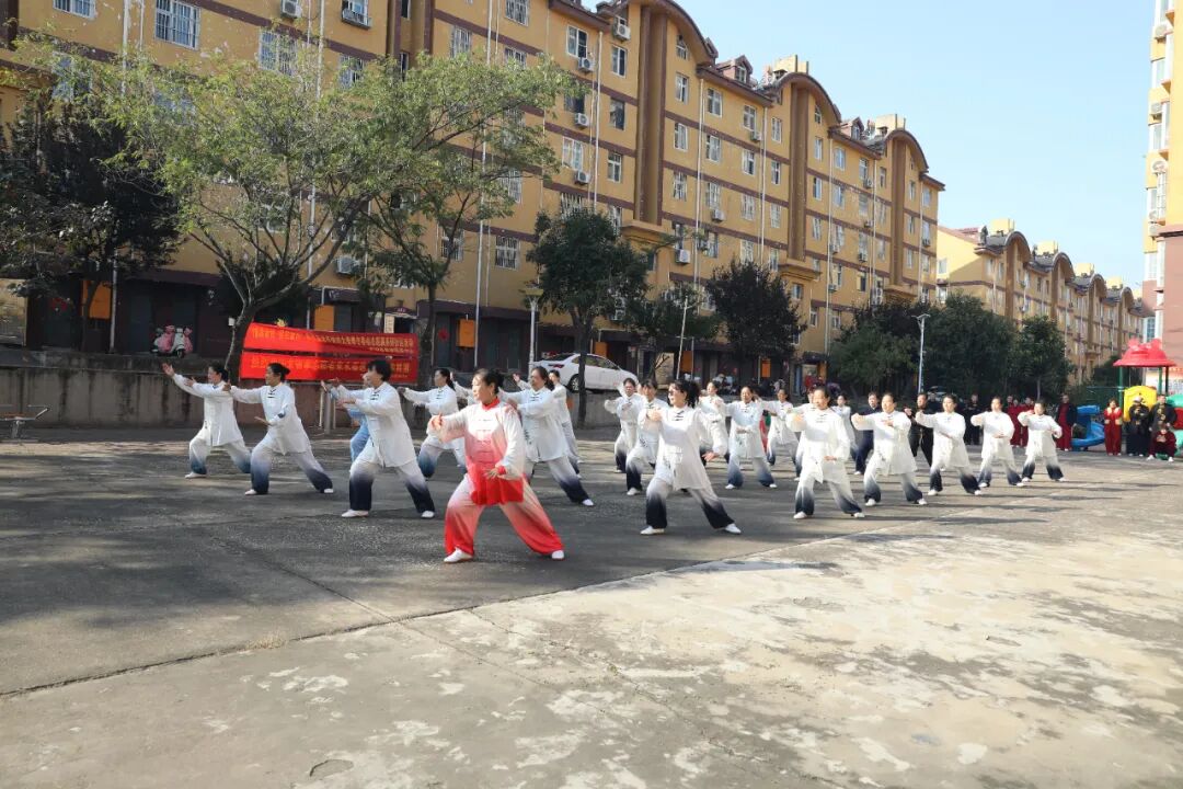 活动当天,社区广场早早热闹起来,老年居民们围坐一圈,期待演出开始。伴随着舒缓雅致的音乐,专委会的志愿者们身着统一的太极服,精神饱满地登场。他们动作舒展流畅,时而如行云流水般轻柔,时而如松柏挺立般沉稳,24式简化太极拳、太极剑、太极扇等节目轮番上演,一招一式都尽显太极拳的韵味与力量。整齐划一的阵型、刚柔并济的招式,引得现场掌声不断,不少居民还拿出手机记录下精彩瞬间。演出间隙,志愿者们还与在场老人亲切交流,分享太极拳对强身健体、调节心态的好处。